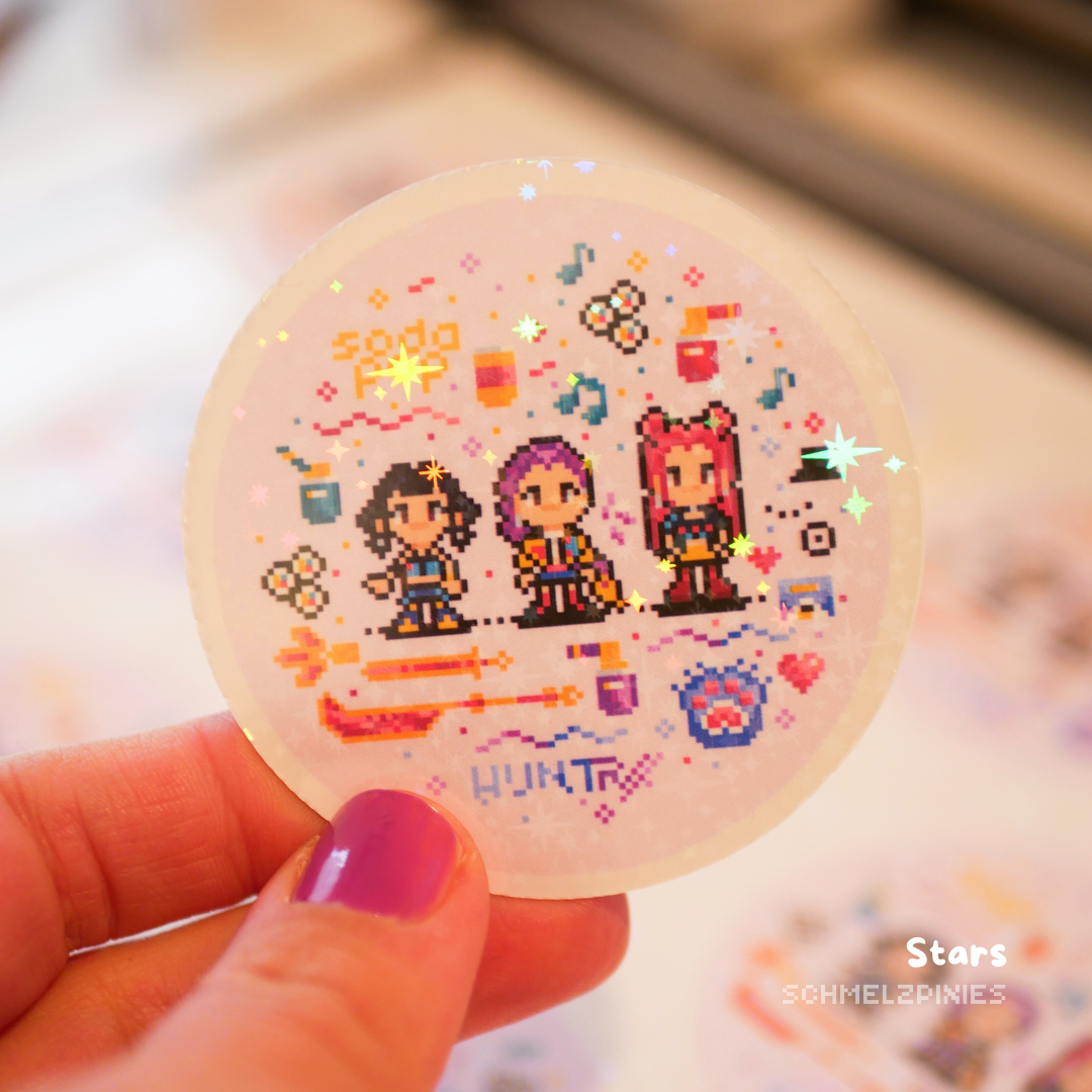 Wunderschöne Pixel-Charaktere warten darauf, von dir entdeckt zu werden! Wähle das Folieneffekt, das dir am besten gefällt – die Fotos zeigen nur einen kleinen Vorgeschmack, in der Hand strahlen die Sticker noch viel, viel schöner! Kleb sie in dein Stickeralbum, Notizbuch, auf Laptop, Handyhülle, Trinkflasche, Ordner oder Planer, eigentlich überall dort, wo du ein bisschen Pixel-Pop-Magie haben möchtest! Lass dich überraschen, wie toll sie in echt funkeln und jeden Moment verschönern.